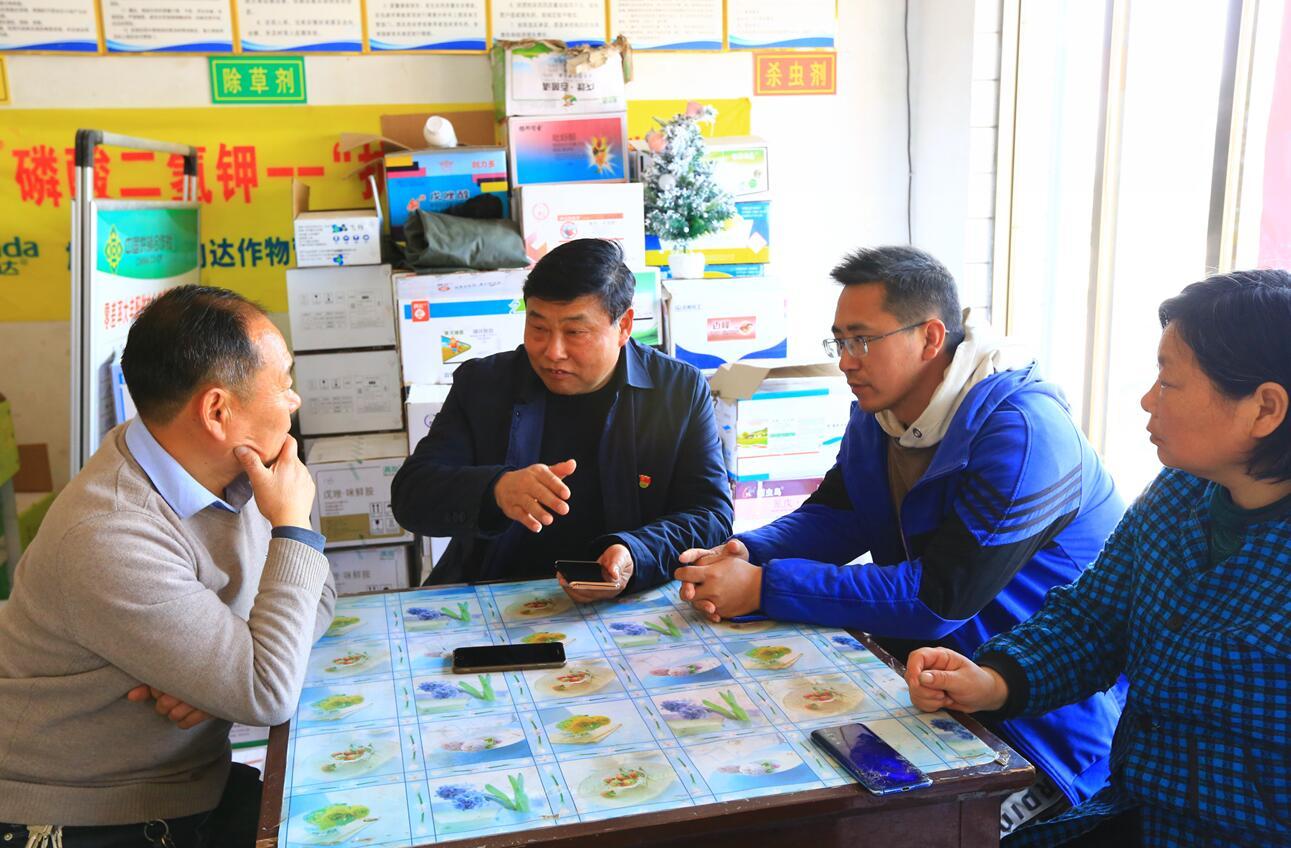 殷長榮(左二)走訪農(nóng)戶