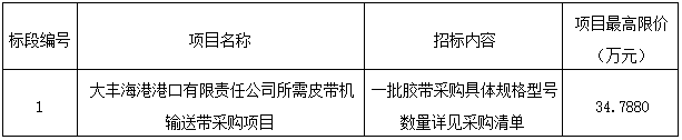 (1)項目名稱:大豐海港港口有限責(zé)任公司所需皮帶機輸送帶采購項目