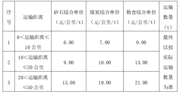 普通貨物運(yùn)輸(入圍供應(yīng)商上限:4家)。