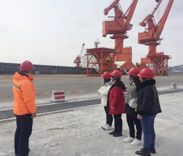 濱海港區(qū)單位女職工在生產(chǎn)經(jīng)營部工作人員的帶領(lǐng)下,學(xué)習(xí)門機(jī)進(jìn)行裝卸作業(yè),了解碼頭從船舶靠岸的前期準(zhǔn)備到靠泊后的裝卸作業(yè)的全部流程。