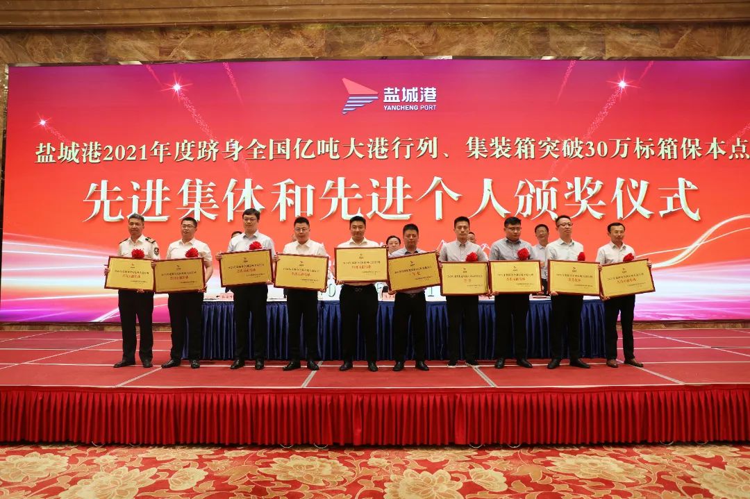 大會在雄壯的國歌聲中開幕。會議宣讀了《關于表彰2021年度躋身全國億噸大港行列、集裝箱突破30萬標箱保本點先進集體和個人及新時代“百團大戰”優秀組織獎和先進個人的決定》《關于表彰2022年第二屆職工文化藝術節獲獎先進集體和個人的決定》《關于表彰“最美鹽城港人”的決定》,并現場為先進集體和先進個人代表進行頒獎。