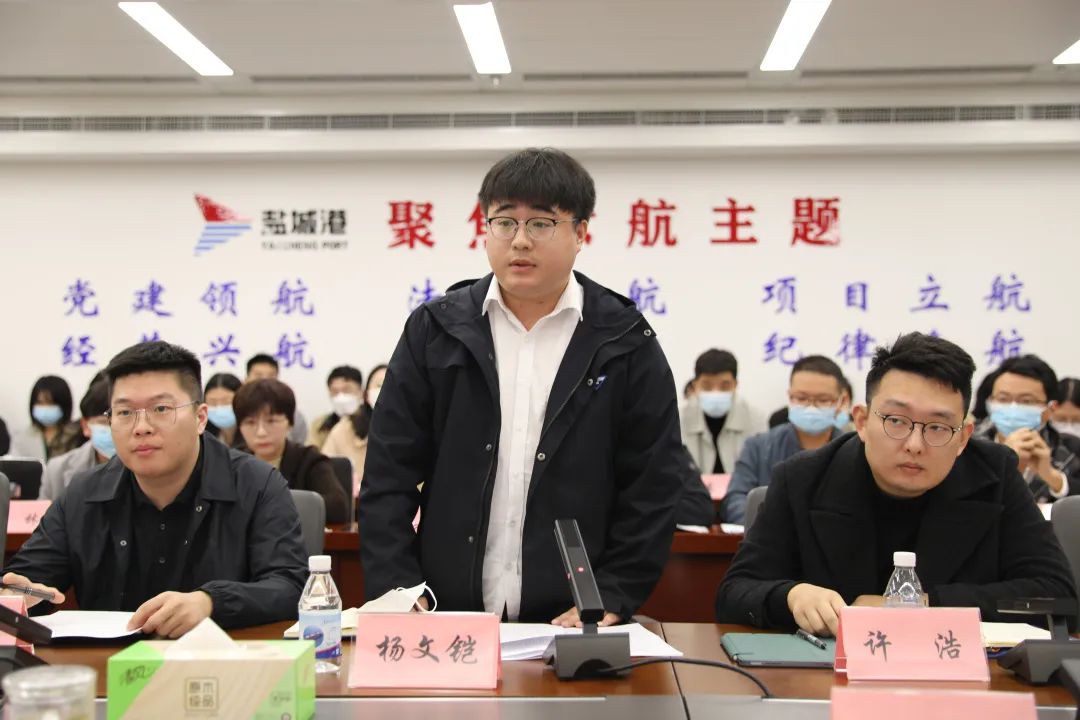 周正雄在講話中指出,黨的二十大報告對青年提出了殷切期望。近年來,集團黨委積極響應市委人才隊伍建設總體要求,始終堅持“強企興業(yè)、人才優(yōu)先”戰(zhàn)略導向,把人才建設擺在工作的重要位置,高度重視名校優(yōu)生和學位人才的培養(yǎng)工作,為青年人才成長創(chuàng)造良好條件并寄予厚望。希望大家時刻以“立大志、明大德、成大才、擔大任”為己任,學深悟透習近平總書記對新時代中國青年寄予的厚望和殷切囑托,牢固樹立“格局決定結局”的人生觀和價值觀,將自身學業(yè)與本崗職位進行有機結合,將集團黨委對大家的信任和關懷有效轉化為激勵自己做好本職工作的強大動力,在工作中多學習、多思考,盡快進入工作狀態(tài),為鹽城港航事業(yè)高質量融合發(fā)展注入新動力。