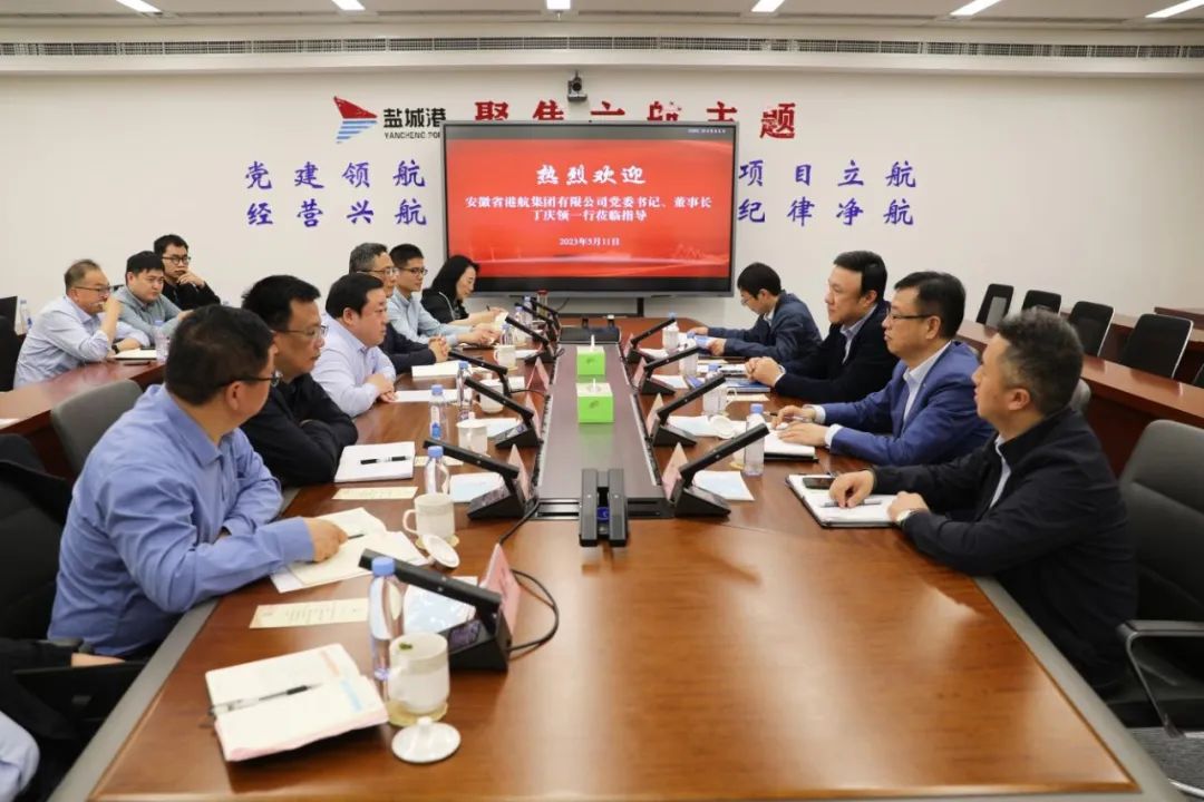 5月11日,安徽省港航集團黨委書記、董事長丁慶領率隊來我集團調研,集團黨委書記、董事長周正雄接待丁慶領一行。安徽港航物流公司董事長、總經理,徽航瑞國際滾裝公司董事長張文付,鹽城港集團黨委副書記、董事、總經理陸帥,鹽城港集團黨委委員、副總經理夏立新、徐振山、梁洪兵,鹽城港集團副總經理袁欣,安徽省港航集團相關部門負責同志等參加。