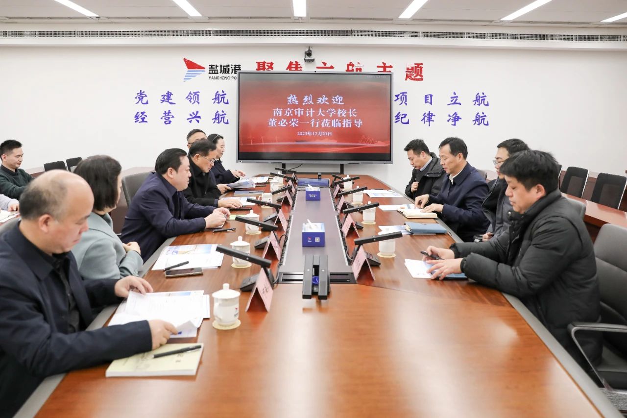 周正雄對董必榮一行的到來表示歡迎,并介紹了鹽城港相關情況。他說,港口作為沿海發展的重要增長極,2020年市委、市政府審時度勢,將全市海港和內河港區融為一體,組建成立鹽城港集團。三年來,集團聚焦改革發展、生產運營、問題處置、風險防控等方面,扎實推進整合、磨合、融合各項工作,實現了“三年三大步”的發展成效。與此同時,集團仍面臨著諸多問題與不足,懇請南京審計大學能夠在財務、審計、法務、融資專業人才培養等方面給予鹽城港更多支持,全面深化校企合作“試點”創新,為鹽城港的健康可持續發展保駕護航。