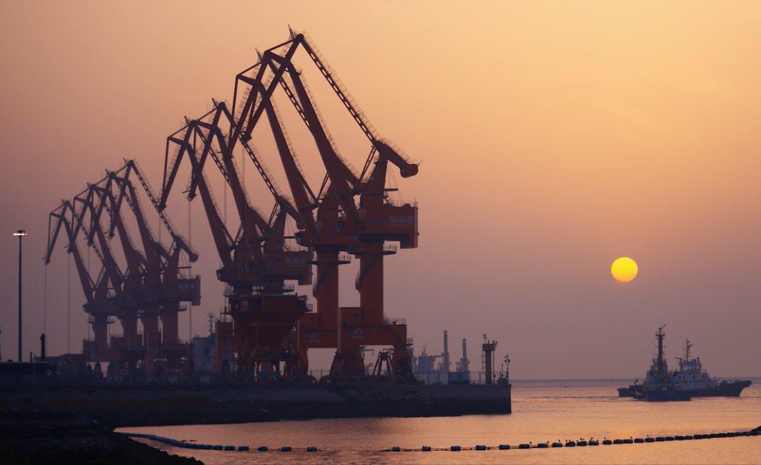 多年后,我們?cè)诖筘S港區(qū)等你!在這里,你將看到萬(wàn)噸巨輪與高大門(mén)機(jī)光影交織、一派繁忙,處處彰顯出鹽城港主港區(qū)的勃勃生機(jī)。