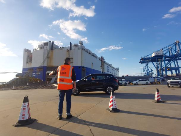 為保障汽車運輸運作順暢,智慧港口公司提前部署,精細組織,周密安排,依托滾裝碼頭泊位、專業運輸團隊、場地堆放存儲等優勢,為車企“量身定制”商品車“同進同出”的雙線作業模式,不僅為車企降低了運輸成本,減少車輛進入堆場的堆存、提離等時間,大大提高了運輸時效,也為商品車通道建設做大做強提供了有力支撐與保障。