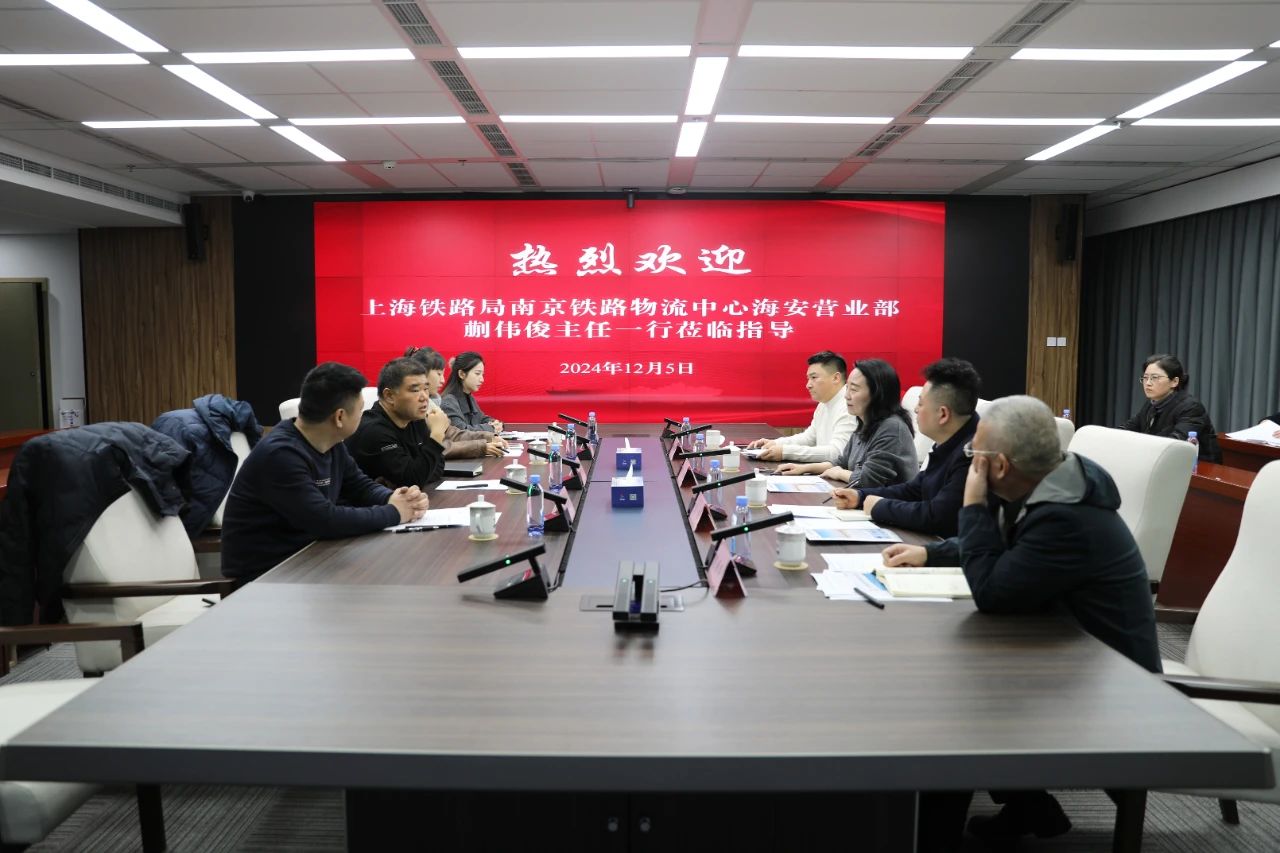 12月5日上午,上海鐵路局南京鐵路物流中心海安營業部蒯偉俊主任一行拜訪我集團,就海鐵聯運、鐵水聯運等事宜進行深入交流。集團副總經理袁欣接待。