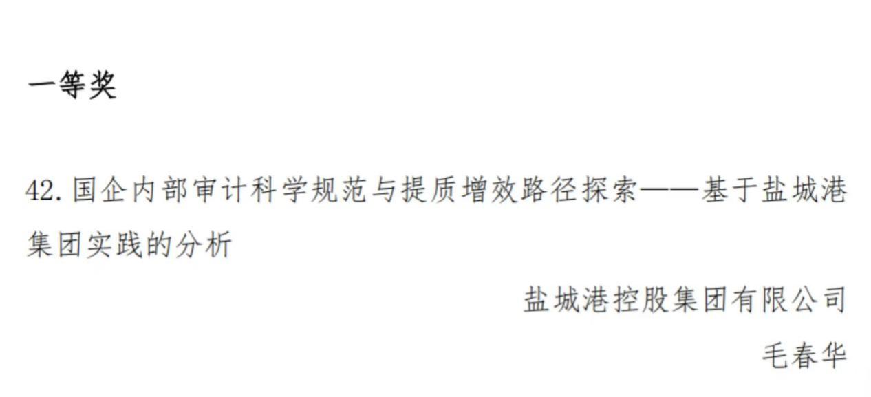 12月24日,江蘇省內(nèi)部審計(jì)協(xié)會(huì)公布了2025年度省內(nèi)部審計(jì)理論研討活動(dòng)獲獎(jiǎng)結(jié)果,集團(tuán)審計(jì)部報(bào)送的《國(guó)企內(nèi)部審計(jì)科學(xué)規(guī)范與提質(zhì)增效路徑探索——基于鹽城港集團(tuán)實(shí)踐的分析》論文榮獲一等獎(jiǎng)。