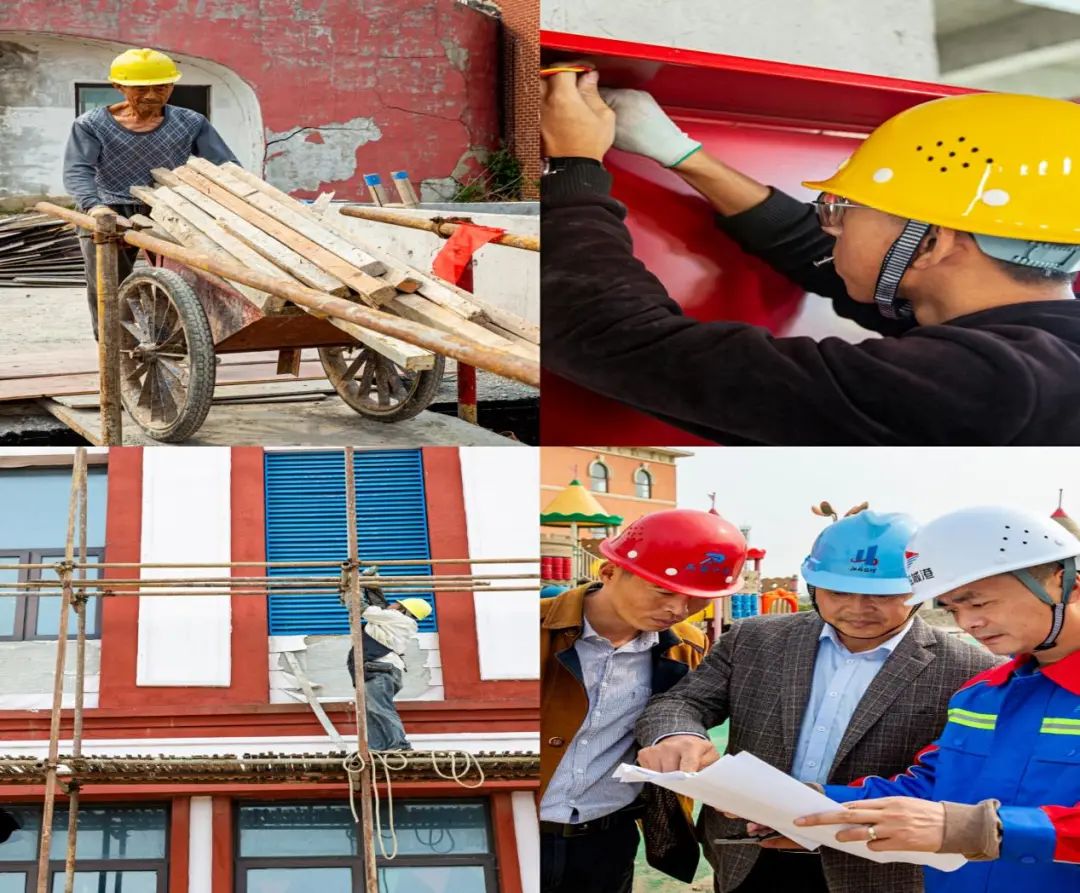 早晨7點(diǎn),清冷的秋風(fēng)夾雜著海浪的清新。在熱火朝天的大豐港區(qū)海盜王國(guó)施工現(xiàn)場(chǎng),“轟轟”的機(jī)器作業(yè)聲與“釘釘”的鋼筋碰撞聲不絕于耳……工人們安全帽下的頭發(fā)早已被汗水浸濕,身上的衣服更是可以擰出水來(lái)。