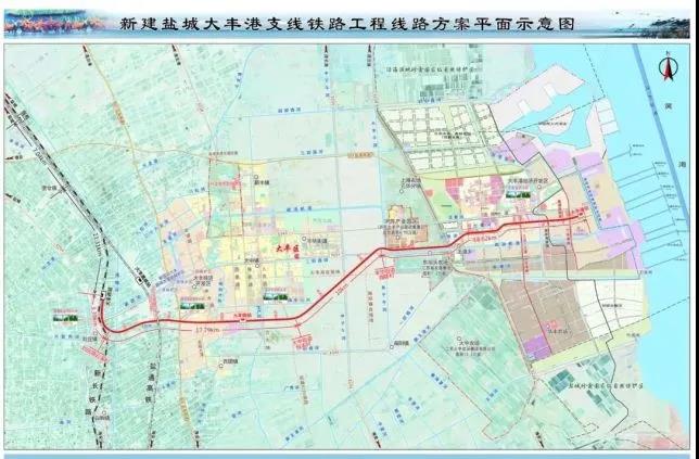大豐港鐵路支線是國家發(fā)展改革委等五部門聯(lián)合印發(fā)的《關(guān)于加快推進鐵路專用線建設(shè)的指導意見》(發(fā)改基礎(chǔ)〔2019〕1445 號)文中明確的重點鐵路支線項目,鹽城市委市政府和省交通運輸廳、省鐵路集團計劃今年全線開工建設(shè)。