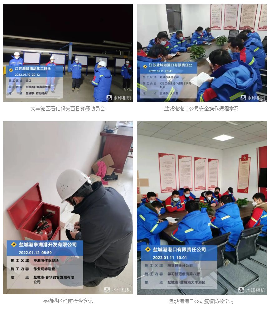 1.安全生產(chǎn)、疫情防控工作常態(tài)化持續(xù)開展。鹽城港港口公司:安全、疫情防控日常巡查,班前會,防疫消毒;濱海港區(qū):組織疫情防控演練,安全、疫情防控日常巡查,碼頭設(shè)備作業(yè)前安全檢查;大豐港區(qū):安全日常檢查,防疫消殺;集裝箱集團(tuán):安全、疫情防控日常巡查,碼頭設(shè)備作業(yè)前安全檢查,抓好了日常消殺工作;投資集團(tuán):安全、疫情防控日常巡查,組織作業(yè)人員核酸檢測;陸港集團(tuán):作業(yè)現(xiàn)場、消防巡查,日常消殺;射陽港區(qū):安全、疫情防控日常巡查,疫情防控演練,設(shè)備安全檢查,夜間安全巡查,安全交底;響水港區(qū):安全、疫情防控日常巡查,開展一線人員核酸檢測,對作業(yè)區(qū)、辦公區(qū)防疫消殺;鹽城港保稅物流公司:開展安全、疫情防控日常巡查,組織作業(yè)區(qū)安全巡查,日常消殺工作;鹽城港項(xiàng)目公司:組織日常安全巡查,開晨會布置安全工作。