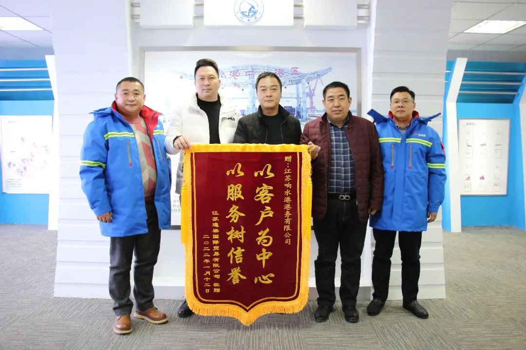 2月17日,江蘇通梁國際貿易有限公司給響水港區送來一面錦旗,上書“以客戶為中心,以服務樹信譽”,這面錦旗見證著雙方合作從無到有、從小變大的歷程。