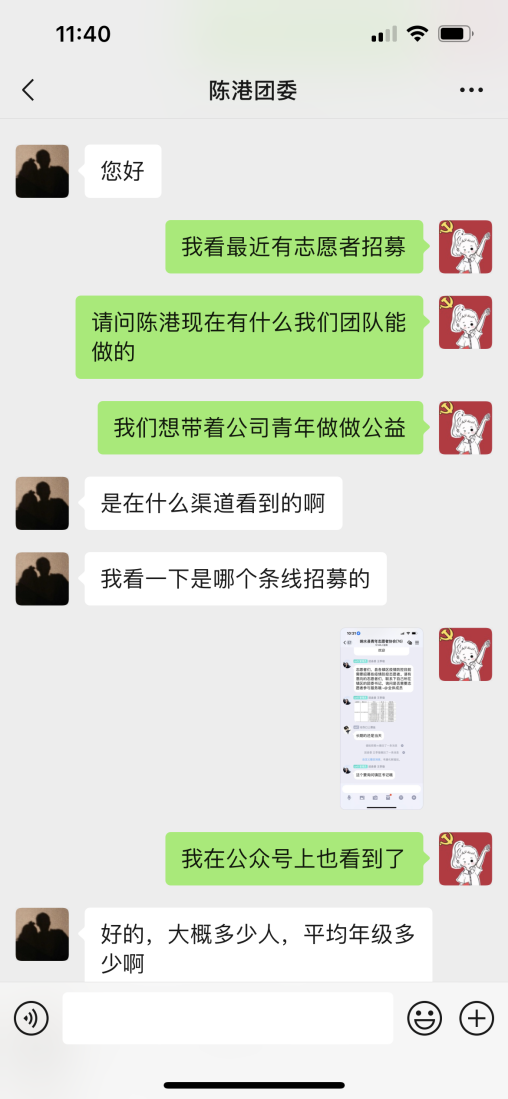 疫情之下,有一種責任,叫青年擔當;有一種勇氣,叫青年我上。當前疫情防控形勢嚴峻復雜,響水港區積極響應響水縣發布的疫情防控志愿招募令,港區青年職工紛紛表示要積極主動承擔起青年人的擔當,為社會貢獻自己的一份微薄之力。響水港區主動聯系縣委宣傳部、團縣委、縣志愿者協會等部門,積極主動申請參加港城志愿活動。為更好體現團隊的向心力和凝聚力,響水港區青年職工踴躍加入紅燭協會,成立志愿服務隊,以青春之光,點燃青春之夢。