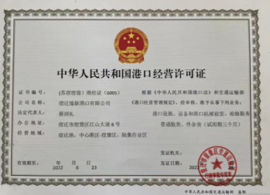 3月26日,獲得宿遷市交通行政主管部門頒發(fā)的老碼頭試運營許可證;