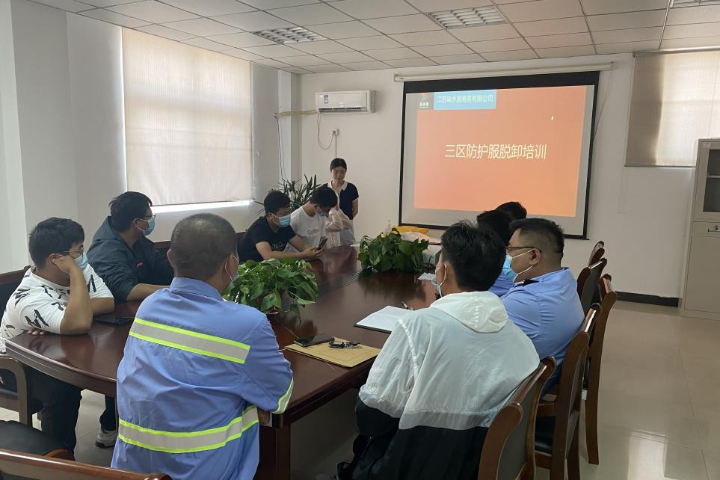 為堅決打好新型冠狀病毒疫情防控阻擊戰,全面提高應對疫情的響應能力,熟悉應急處置具體流程,從嚴抓好疫情防控工作,近日,響水港區港務公司特邀響水縣港城醫院專職醫護人員,對港區作業人員進行疫情防控相關的三區防護服穿脫消殺培訓。