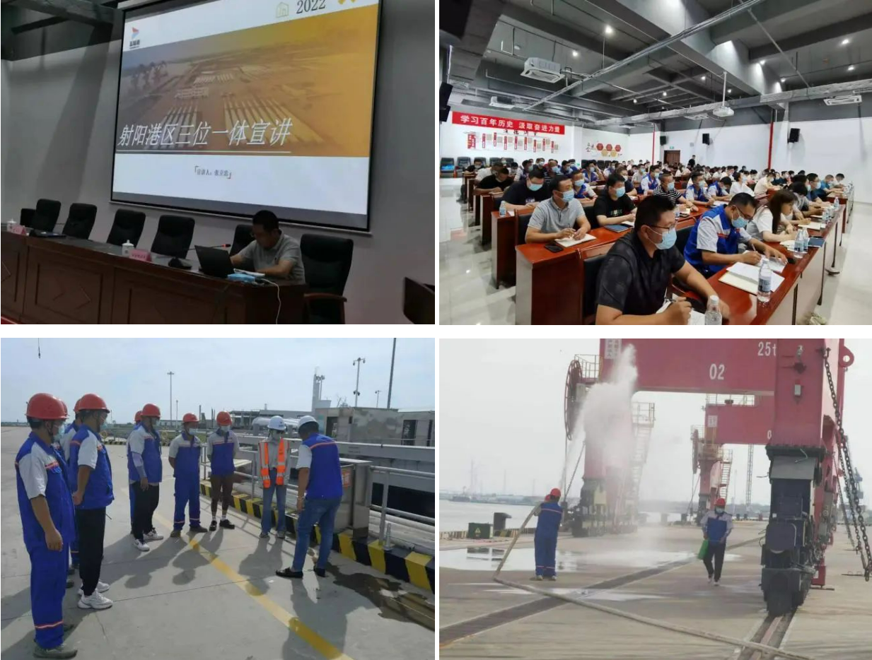 為確保射陽港區中秋節日期間安全生產、疫情防控、環境保護“三位一體”工作形勢持續穩定,及時消除各類隱患,使港區度過一個安全、祥和的中秋佳節,射陽港區嚴格根據集團黨委要求,結合港區實際,扎實有序開展各項節日維穩工作,全力維護港區中秋節日期間安全穩定環境。