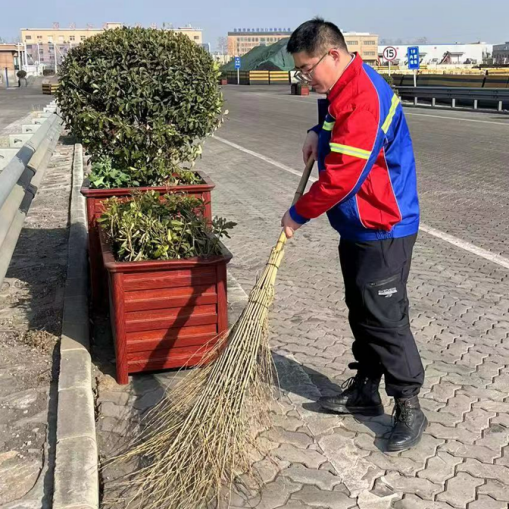 他們手拿鐵鍬 肘夾掃把 急吼吼往前趕