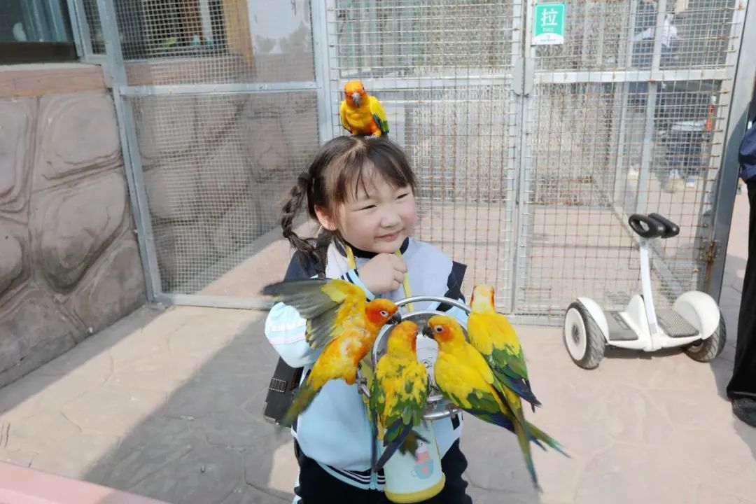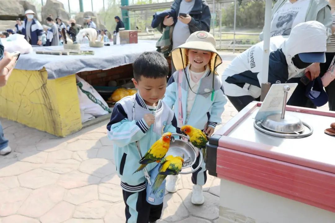 同學(xué)們與鳥兒進(jìn)行親密互動,在工作人員的指導(dǎo)下給鳥兒們喂食,引得孩子們陣陣歡笑,人與自然和諧共生的畫面充分彰顯。