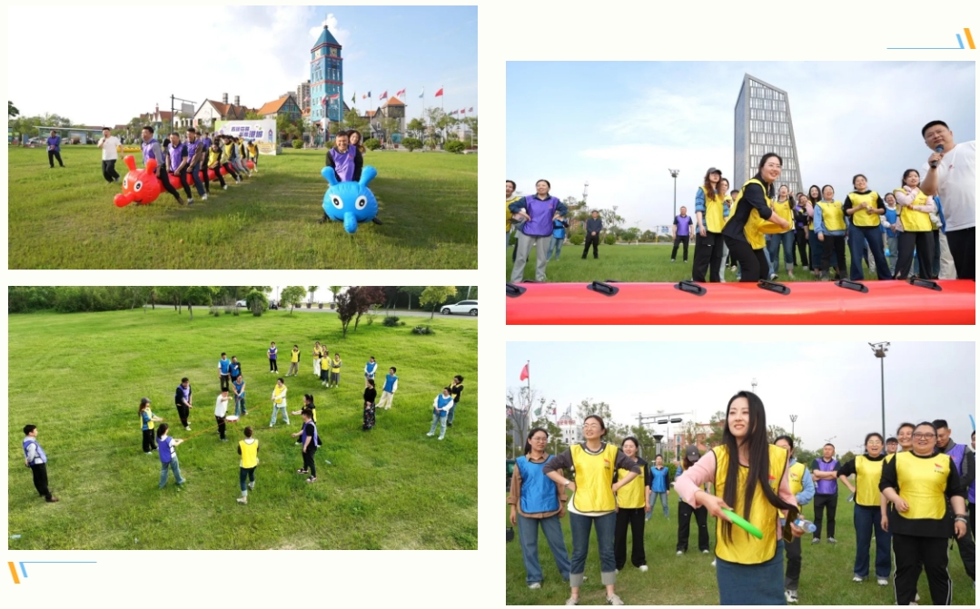“1、2、3、4、……”“加油,加油,藍隊必勝……”“鼓動人心”“毛毛蟲接力賽”“九宮格飛盤”等趣味小游戲更是將現(xiàn)場氣氛推向了高潮。活動中,員工們共同參與、共同協(xié)作,共同完成了一個又一個挑戰(zhàn),展現(xiàn)出鹽城港人如同家人般的緊密關(guān)系。拓展活動不僅鍛煉了員工的團隊協(xié)作能力,更讓大家在合作中感受到了彼此之間的默契與信任。