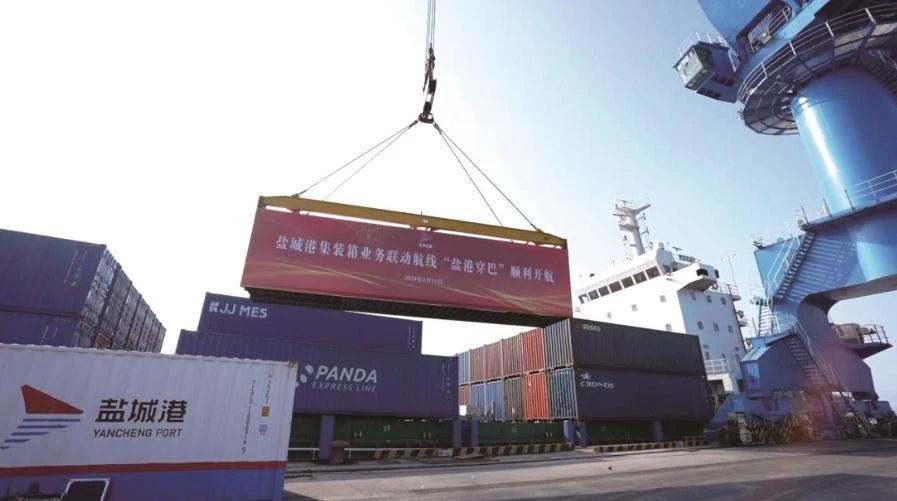 3月下旬,鹽城港—阿聯酋外貿集裝箱航線成功試航,這標志著鹽城港在深化國際貿易合作、拓寬海上絲綢之路上邁出了堅實的一步。