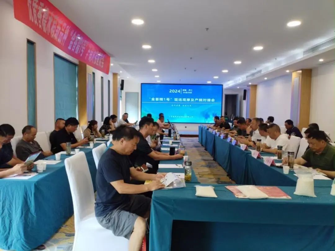 近日,農(nóng)業(yè)科技集團在安徽省廬江縣召開水稻品種“金香糯1號”現(xiàn)場觀摩暨產(chǎn)銷對接會。來自江蘇和安徽的種子經(jīng)銷商、種植大戶、稻米加工企業(yè)負責人以及糧食經(jīng)銷商齊聚一堂,共同探討“金香糯1號”訂單種植產(chǎn)銷對接合作事宜。