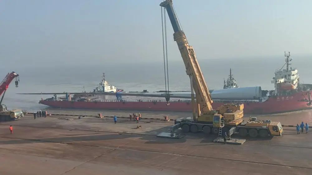1月19日,“永捷盛達(dá)”輪滿載著希望與重任,從廣東陽(yáng)江出發(fā),順利抵達(dá)鹽城港大豐港區(qū)通用碼頭2號(hào)泊位。輪上所載葉片長(zhǎng)達(dá)147米、重85噸,是全國(guó)最長(zhǎng)、最重的一款葉片。此次葉片的接卸,是鹽城港大豐港區(qū)在風(fēng)電產(chǎn)業(yè)裝卸領(lǐng)域的又一重大突破。