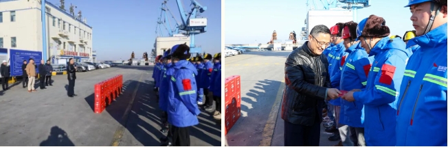 山舞銀蛇迎巳歲,精神振奮賀新春。1月29日,受集團(tuán)黨委、董事會委托,當(dāng)天上午,集團(tuán)黨委副書記、董事、總經(jīng)理陸帥率隊(duì)前往大豐港區(qū)看望慰問堅(jiān)守在一線工作崗位的工作人員,代表集團(tuán)黨委、董事會向他們致以新春的祝福和節(jié)日的問候。集團(tuán)黨委委員、副總經(jīng)理丁安廣,集團(tuán)相關(guān)部門和單位主要負(fù)責(zé)同志等參加。