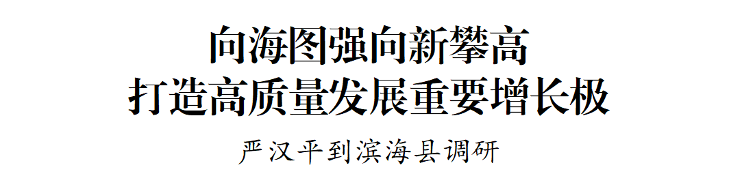 8月30日,市委副書記、代市長嚴(yán)漢平到濱??h調(diào)研,強調(diào)要深入學(xué)習(xí)貫徹習(xí)近平總書記對江蘇工作重要講話精神,牢牢把握高質(zhì)量發(fā)展首要任務(wù),搶抓江蘇沿海發(fā)展等戰(zhàn)略機遇,堅定向海圖強,奮力向新攀高,加快打造全市高質(zhì)量發(fā)展重要增長極。
