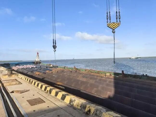 面對密集到港船舶和緊張船期,港區(qū)科學(xué)統(tǒng)籌作業(yè)資源,優(yōu)化物流組織,通過整合路線、強化聯(lián)運、推廣直取直裝等方式,打通銜接堵點,實現(xiàn)“車船直裝、貨不落地”的高效轉(zhuǎn)運模式。近日,光伏管樁項目第8船作業(yè)圓滿完成,展示了港區(qū)高效協(xié)同、精準(zhǔn)作業(yè)的硬核實力,為后續(xù)新業(yè)務(wù)開展樹立了標(biāo)桿。
