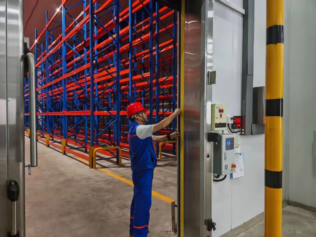 為減少冷量流失、降低設(shè)備運(yùn)行壓力,港匯保稅從“規(guī)范管理+物理防護(hù)”雙管齊下。優(yōu)化開(kāi)門管理:明確冷庫(kù)門使用規(guī)范并張貼展板上墻,同步優(yōu)化作業(yè)流程,單次開(kāi)門作業(yè)不超過(guò)5分鐘、非必要不頻繁開(kāi)關(guān)門,減少冷量外泄;強(qiáng)化保溫修補(bǔ):定期檢查庫(kù)體保溫層,對(duì)發(fā)現(xiàn)的裂縫、孔洞等破損,采用高性能保溫材料及時(shí)修補(bǔ),從源頭減輕制冷設(shè)備負(fù)荷,既延長(zhǎng)設(shè)備使用壽命,又進(jìn)一步減少能耗損耗。