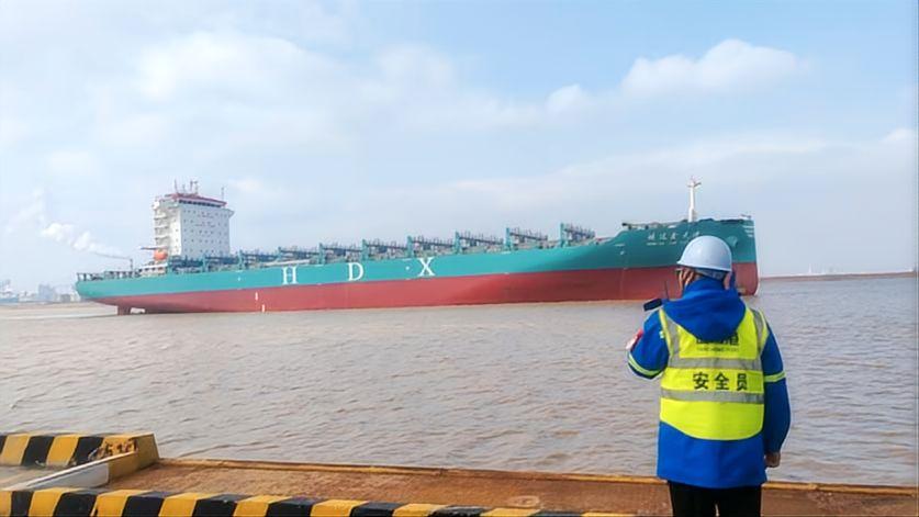 “鴻達鑫天津”輪為3600TEU集裝箱船,采用綠色造船標準與先進工藝,適配無限航區運營,具備裝載量大、油耗低、穩性高等特點,是蘇北地區建造交付的大型外貿集裝箱船之一。作為鹽城地區企業自建的首艘出口整船,業務流程新、協調環節多。為保障該船舶順利出口,響水港區提前制定專項靠泊方案,優化泊位調度與現場服務,開通專屬作業綠色通道;鹽城海關則全程跟進,主動對接企業需求,圍繞通關流程、監管銜接等關鍵環節精準發力,實現靠泊、查驗、備案、出口全流程閉環管理。多部門高效聯動,既保障船舶如期出境,也為本地船企拓展國際市場打下堅實基礎。