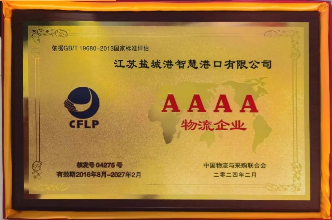 近日,由中國物流與采購聯合會主辦的“第七屆中國(合肥)物流與供應鏈金融創新發展大會暨37屆物流企業授牌大會”在安徽合肥盛大召開,鹽城港智慧港口公司憑借出色的物流服務質量和規范化的運營水平,被評為“AAAA級物流企業”,不僅標志著智慧港口公司在規范化、標準化運營方面已達到國家標準,物流服務模式得到了行業的高度認可,也為公司進一步發展和提升品牌影響力奠定了堅實的基礎。