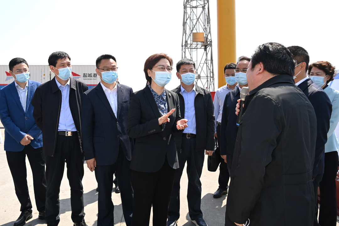 鹽城港大豐港區集裝箱碼頭一派繁忙,滿載著集裝箱的貨輪馬達轟鳴,準備揚帆起航。徐纓走上碼頭,認真聽取鹽城港控股集團運營情況匯報,強調要按照“疫情要防住、經濟要穩住、發展要安全”重大要求,守好疫情防控關口,提升攬貨能力,更好服務地方發展,推動集團發展再上新臺階。