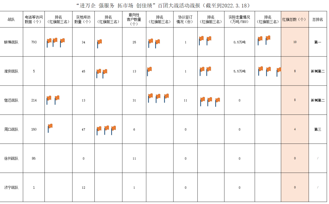 2.濱海港區(qū)戰(zhàn)隊(duì):在拜訪活動中,濱海港區(qū)戰(zhàn)隊(duì)不僅僅局限于規(guī)上企業(yè)名單,拜訪的同時(shí)也不忘挖掘周邊有可能的企業(yè)。通過這種做法也是成功發(fā)掘一家化肥貿(mào)易企業(yè),吞吐量50萬噸,正在商討合同條款,預(yù)計(jì)下周簽訂合同并開始走量。