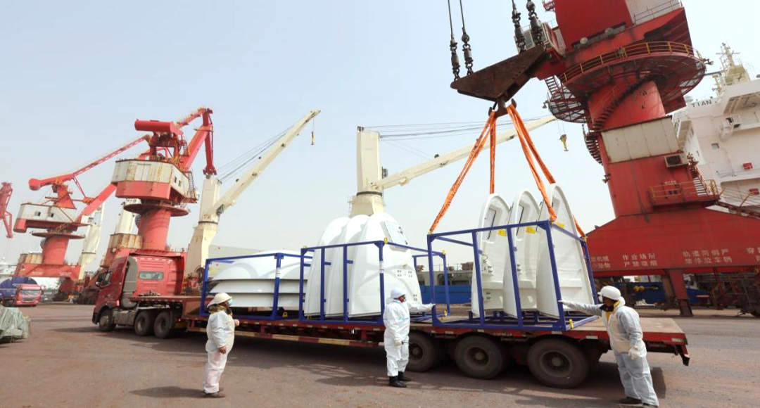 金風(fēng)科技公司作為鹽城港的重要客戶之一,近年來,在“3060”碳排放目標(biāo)和“2030年風(fēng)、光累計(jì)并網(wǎng)不低于12億千瓦”的背景下,加快科技創(chuàng)新,產(chǎn)能迅速擴(kuò)張,其對(duì)高效、便捷的物流運(yùn)輸需求也隨之加大。