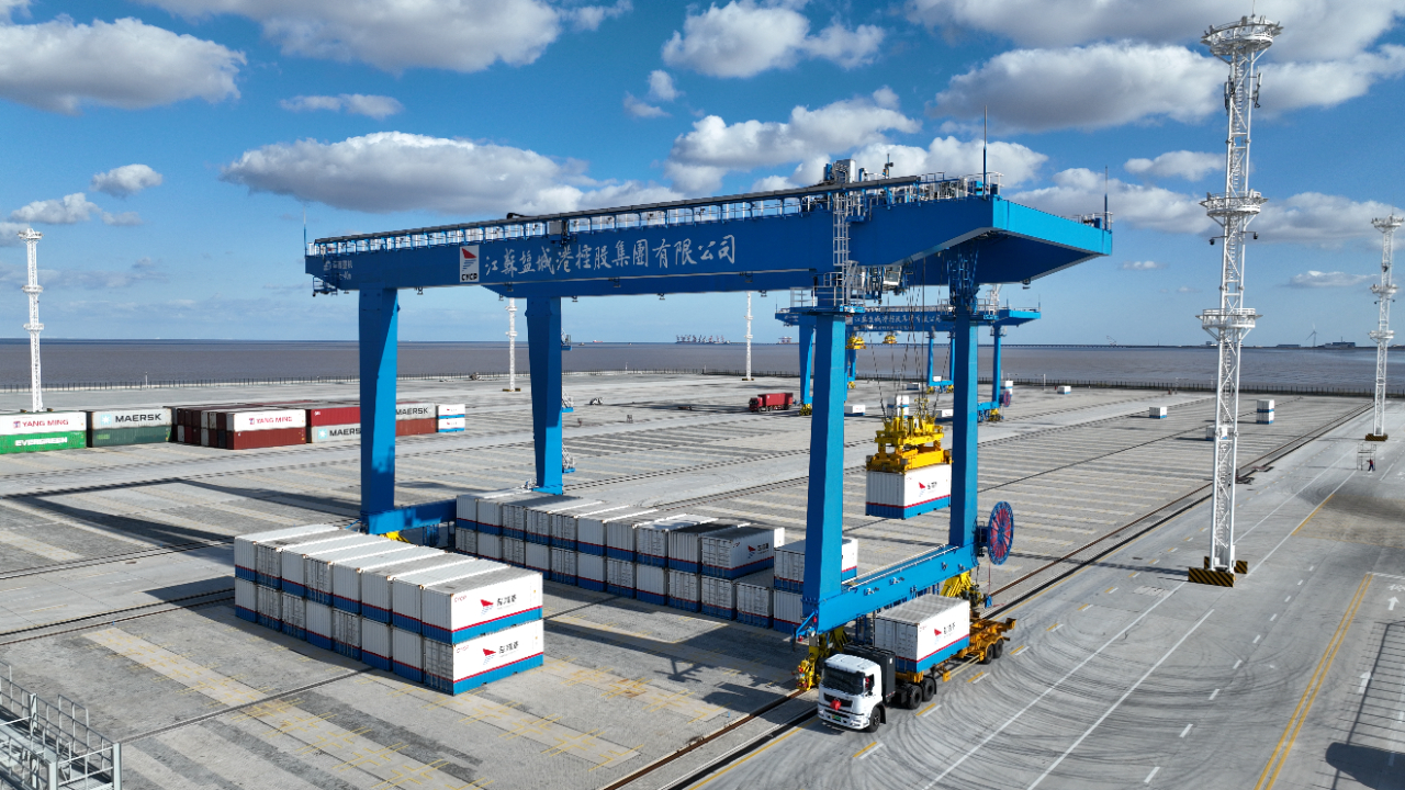 這是大豐港區自動化集裝箱堆場設立后